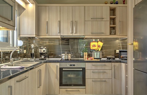 Located in Preveza, the holiday apartment Elia kanali offers guests a fantastic view of the sea. The 110 m² property consists of a living room, a fully-equipped kitchen, 3 bedrooms and 2 bathrooms and can therefore accommodate 6 people. Additional amenities include Wi-Fi, a TV, air conditioning as well as a washing machine. This vacation rental features a private outdoor space with a garden, terrace, and balcony for your enjoyment.