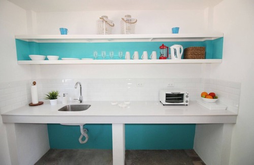 The main house features four bedrooms, four and a half baths and sleeps up to 10 guests. 2 bedrooms are on the ground floor and 2 bedrooms on the second floor. Casa Caricaco is perfect for family reunions or friend’s getaways. Enjoy the ocean breeze and sea views from the living room, beachfront terrace, and fully equipped kitchen.
