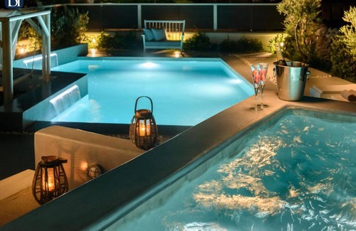 In a tranquil location on the way to Megalochori, a man with 15 years’ experience in the hospitality industry decided to transform a large family vineyard into an enchanting private oasis. Being in perfect harmony with its surroundings, the elegant Villa is a stunning honeymoon villa and a comfortable residence built of black and white stone, which has all the modern amenities one could ask for. This luxury accommodation features an amazing outdoor pool with Jacuzzi as well as breathtaking views from the balconies, which can turn your Santorini vacations into a memorable experience. It’s the ideal combination of the privacy of your own luxury villa, with the comforts of a hotel.