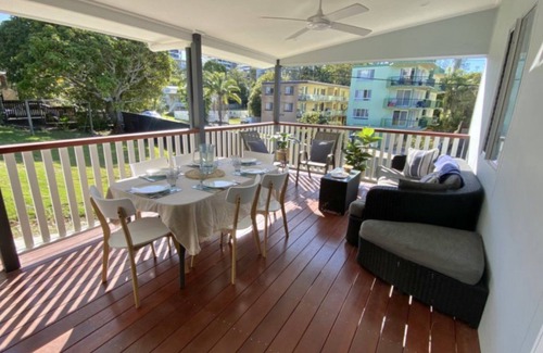 The Blue Beach House is located in a quiet street which feels peaceful and away from the crowds, yet is only a 5 minute walk to the sand at the patrolled Kings Beach. Restaurants and cafes are also within this walk and aplenty. You are welcome to bring your small dog, we just ask that they are kept outside, permitted on the undercover deck. Cool off under the outdoor shower after a fun day exploring the beach!