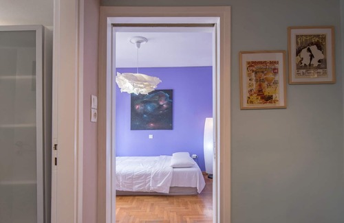 Enjoy this dazzling and artistic apartment in Ampelokipi, an area really close the center of Athens. Only 9min from the closest Metro station (Ampelokipi), the best way to move around as a tourist or a local. This cozy apt. on the 3rd floor consists of a sleeping and living area, a kitchen a bathroom and a balcony.