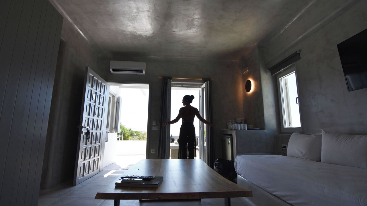 This Iconic Design Superior Suite is a spacious unit with one bedroom, separate space for the living room, large bathroom and balcony. The ideal location at the top floor of the new building and the spacious balcony, give panoramic views to Paradise beach and to the Aegean Sea.