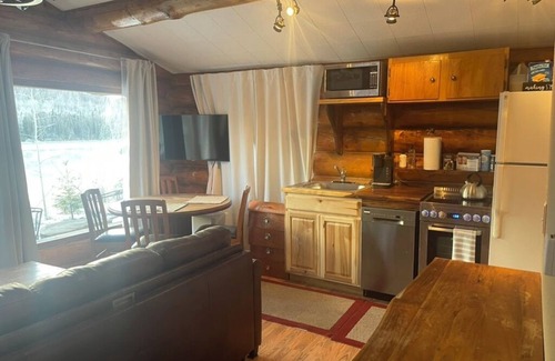 Take it easy at this unique and tranquil getaway. Enjoy looking at the turquoise waters of the Kenai river while relaxing in your cabin. Nestled along the serene banks of the Kenai River, this charming 50-year-old log cabin offers a unique blend of rustic charm and modern comforts. With large windows that frame breathtaking views of the river, guests can enjoy watching boaters and wildlife right from the cozy interior. The cabin features a comfortable bedroom, a well-equipped kitchen with an oven, dishwasher, microwave, and a quaint bathroom. Perfect for couples or solo travelers seeking a peaceful escape, this cabin is a slice of paradise.