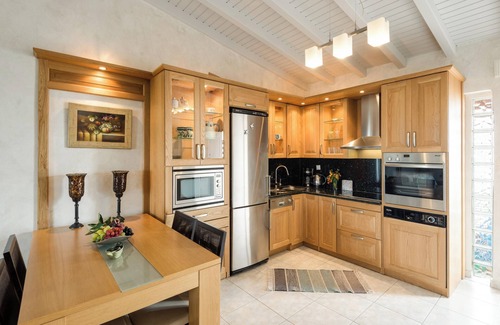 The apartment offers a charming, fenced garden for added privacy, as well as a sunny balcony where you can enjoy your morning coffee overlooking the sea. In addition, there are comfortable outdoor furniture pieces for relaxing on warm days.