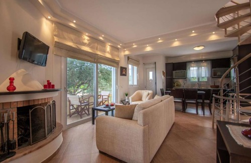 Boasting a patio with garden views, a garden and a terrace, Ianthi Beach Villa can be found in Makris Gialos, close to Psarou Beach and 1.7 km from Amboula Beach. The air-conditioned accommodation is less than 1 km from Drosia Beach, and guests benefit from complimentary WiFi and private parking available on site.