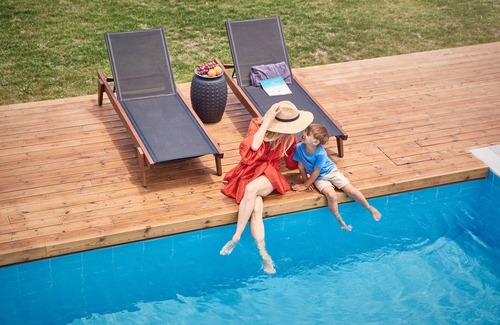 The enclosed coastal-view large outdoor pool (30m2), will prove enormously popular amongst all generations, especially with the mesmeric views and stunning seascapes as a backdrop. Lay out al fresco lunches and make like the Greeks, grazing on cold meats and olives between dips, before reclining to watch the sunset unfold with a G&T from the pool bar, on hand by laying at the sun loungers. Little ones are sure to have hours of fun at the outdoor area, and the sensory swimming pool to splash about in until well past bedtime.