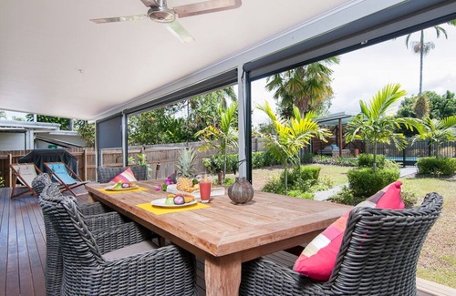 Jalun Bayun, the Sea House, in the local aboriginal dialect, is the name of this newly refurbished seaside property. This immaculately presented house is situated across the road from beautiful Newell Beach, Tropical North Queensland, Australia. With three adequate bedrooms, sleeping six, this house creates the perfect base for a tropical beach holiday like no other. The house has polished floor boards throughout and each of the 3 bedrooms have ceiling fans, air conditioners and inbuilt wardrobes. The kitchen has all the latest modern appliances that one would need, including a coffee machine, dishwasher and microwave. The large outdoor deck is ideal for BBQs and entertaining and the open plan living area gives you views across the Coral Sea over to Port Douglas and beyond. Beautifully furnished and decorated with artwork by local artists, this is the ultimate home away from home while you take in all that Far North Queensland has to offer, including the Daintree National Rainforest, the Great Barrier Reef, and nearby towns of Mossman and Port Douglas featuring local markets, cafés, restaurants, boutiques and more. If going out isn't on your agenda for the day, this property is footsteps to the warm sands of Newell Beach and the beautiful poolside cabana is the perfect place to relax and pass the day away.