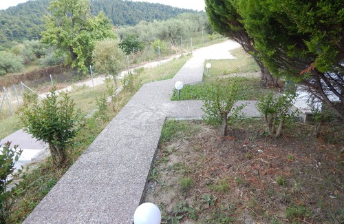 From Thessaloniki Airport, take the road to Halkidiki. At the intersection of Moudania, about 55 km from Thessaloniki, turn and following the signs to Kassandra. We continue for another 49 kilometers to get to Pefkohori. Meanwhile we crossed the Hanioti and Pefkohori. Once we get Paliouri turn left and go up the village. We ask you to find the way to the chapel of St. Nektarios. Adjacent is the road that leads to the "Studio Kripis". The first time we can meet in Pefkohori on to help you find the location. Our visitors without a vehicle can be served by the bus to Thessaloniki .