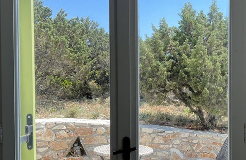 Access to the house is through a tiny hamlet and the final ascent is pretty steep. Hiring a car is advisable to take advantage of the beautiful surroundings, although there are buses and you can walk to the nearest beach in 15 minutes. It is a 15 minute drive from the main port. The local village has plenty of excellent traditional tavernas, a few well stocked super markets, an ATM and a great bakery.
