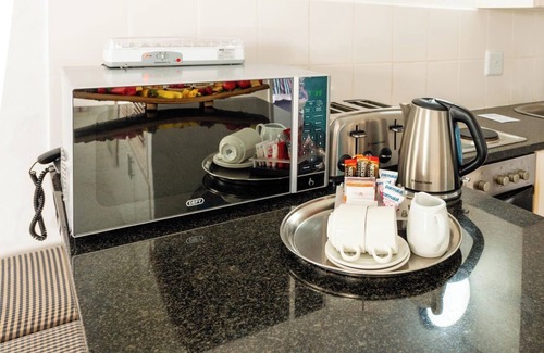 Kaliva 128, a kaliva at Club Mykonos in the Village section, is ideal for couples or small families, featuring a king-sized bed in the open-plan lounge and two single beds in a private bedroom. Enjoy pool views from the balcony, a fully equipped kitchen with stove, oven, fridge, and microwave, and a cozy lounge with flat-screen TV. The bathroom includes a shower, and guests can use the communal braai. Perfect for a seaside escape with all the comforts of home!