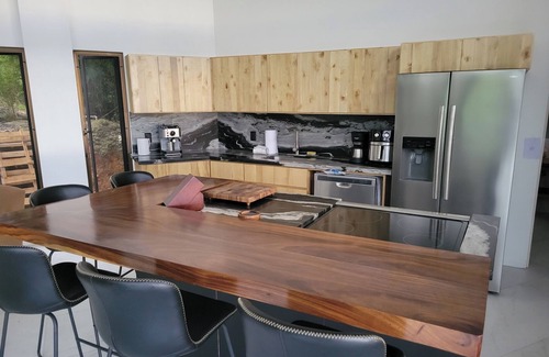 Casa Vista at Villa Las Olas is a newly constructed Mountain Retreat. The downstairs is a Great Room design with Living Room, Kitchen, Cooking Island/Bar and Guest Bathroom. The upstairs is a Two Suite Retreat. Each bedroom has it's own spacious bathroom and both rooms share the Panorama Balcony. The overall vibe is Fresh & Contemporary. You'll see a Water View from every room. This is the place to find your Pura Vida!