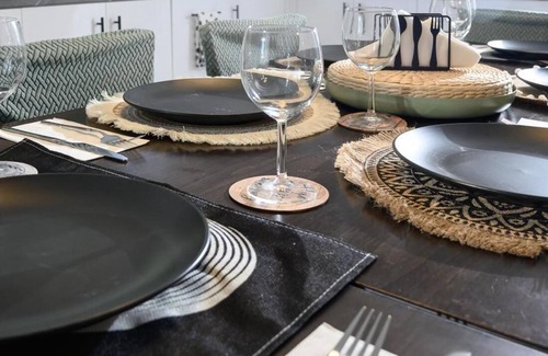 Modern Amenities: Guests enjoy free WiFi, air-conditioning, and a fully equipped kitchen with a dishwasher and microwave. Additional amenities include a washing machine, balcony with garden views, and a work desk.
