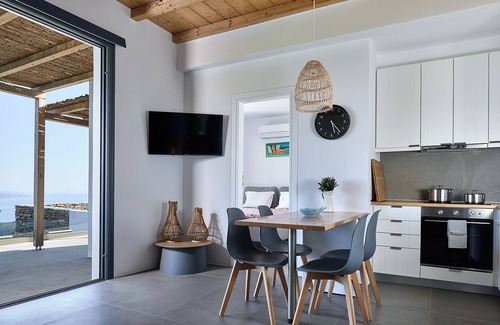 Wake up to breathtaking sunrise views each morning, and spend your days lounging by the stunning infinity pool, where the Aegean Sea seems to merge with the horizon. The outdoor terrace is ideal for soaking in the sun or enjoying a meal while surrounded by the beauty of nature.