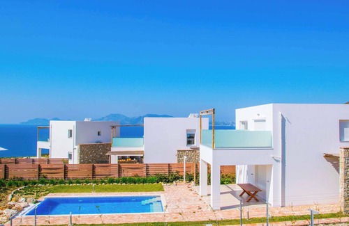Sleek, sophisticated, and stylish are the words we’d use to describe the interiors, with straight-cut architecture that adds a modern luxe. Built with the extraordinary views in mind, the ground floor space is framed with large sliding doors, allowing you to take in every inch of the seascape. The living room is a cosy nook styled with minimalist décor, while the adjoining kitchen is a knockout with a sleek finish and high-end appliances. Intended for a small group, across the villa you’ll find two queen-size bedrooms and a sofa bed that can comfortably sleep one additional adult.ou’ll find two queen-size bedrooms and a sofa bed that can comfortably sleep a further adult . Both bathrooms are very generous but the upstairs ensuite whirlpool bathis a wonder - a bathtub with a view!