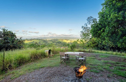 Escape to Tiny House Elevation 152 by Tiny Away, a standout among holiday homes nestled on Sweet AZ Farm in Dagun, Queensland. Guests can enjoy a peaceful stay surrounded by nature, explore scenic walking trails, and take in breathtaking 360-degree views from the 331-metre-high lookout over the Mary Valley and Glass House Mountains.