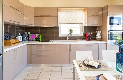 Villa Galini covers 155m2 and can accommodate 8 guests in its 4 bedrooms and up to 10 if necessary. It is a three-storey villa designed to offer direct views to the sea and also because it is located in the edge of the complex it offers full privacy to the pool area which cannot be overlooked from the other villas.